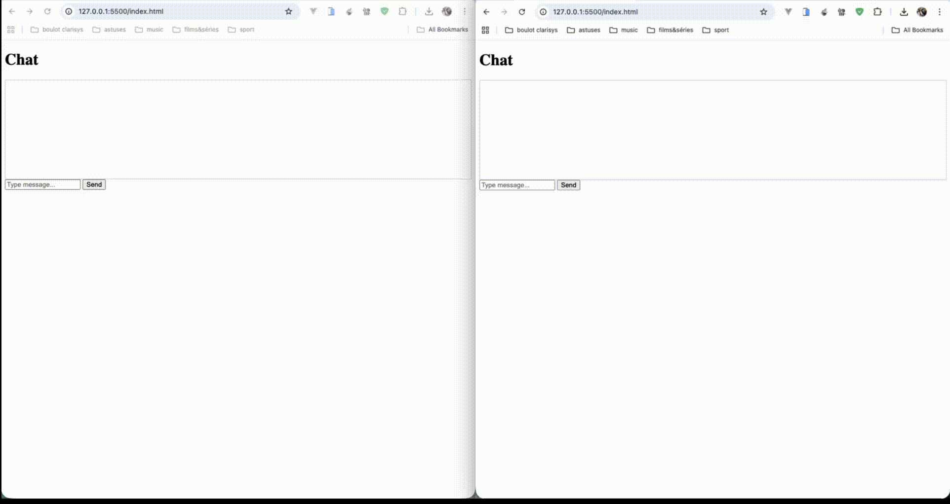 Open the html page with your browser twice to coonect to th SSE server